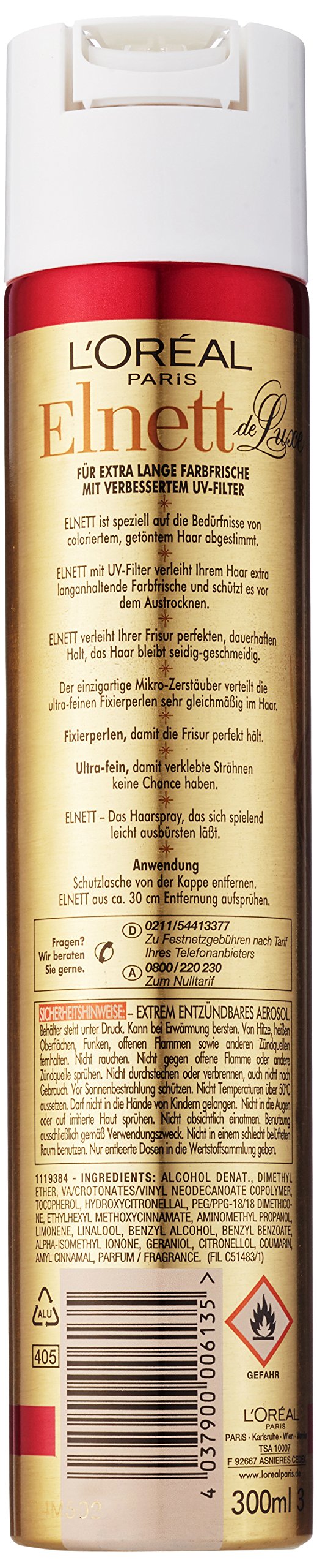 L Oreal Paris Elnett De Luxe Haarspray Mit Pflegendem Arganol Leichtes Ausbursten Ultra Feines Spray Mit Starkem Halt 250 Ml Amazon De Kosmetik